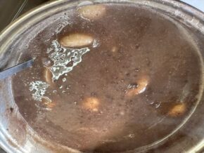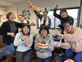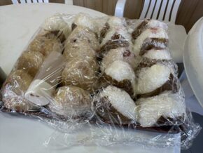 ▲昨晩、スタッフ真由美が夜なべして作ってくれた豚汁+梅と鳥ごぼうのおにぎり+お餅たっぷりのぜんざいを振る舞いました\( 'ω')/